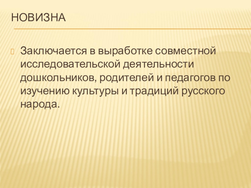 Заключается в выработке совместной исследовательской деятельности дошкольников, родителей и педагогов по
