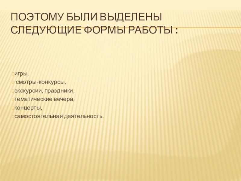 ПОЭТОМУ БЫЛИ ВЫДЕЛЕНЫ СЛЕДУЮЩИЕ ФОРМЫ РАБОТЫ :
