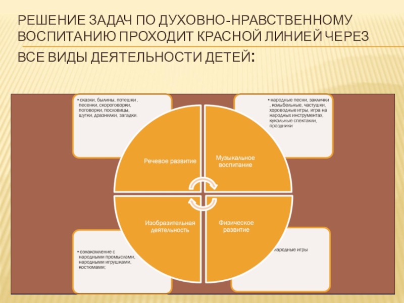 Слайд 12РЕШЕНИЕ ЗАДАЧ ПО ДУХОВНО-НРАВСТВЕННОМУ ВОСПИТАНИЮ ПРОХОДИТ КРАСНОЙ ЛИНИЕЙ ЧЕРЕЗ ВСЕ ВИДЫ