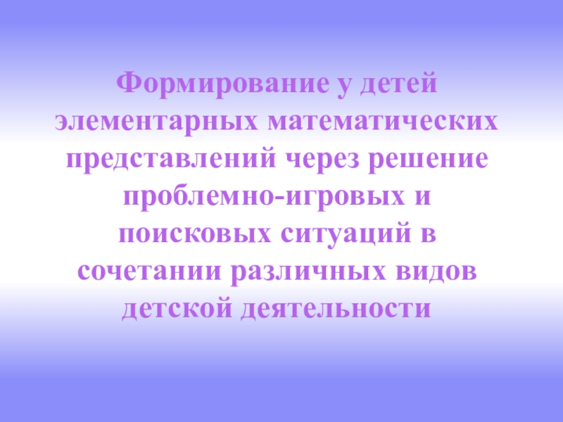 ситуаций в сочетании различных видов детской деятельности