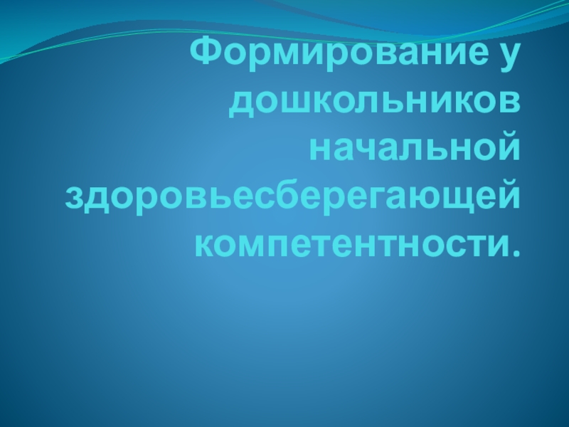 Слайд 1 Формирование у дошкольников начальной здоровьесберегающей компетентности.