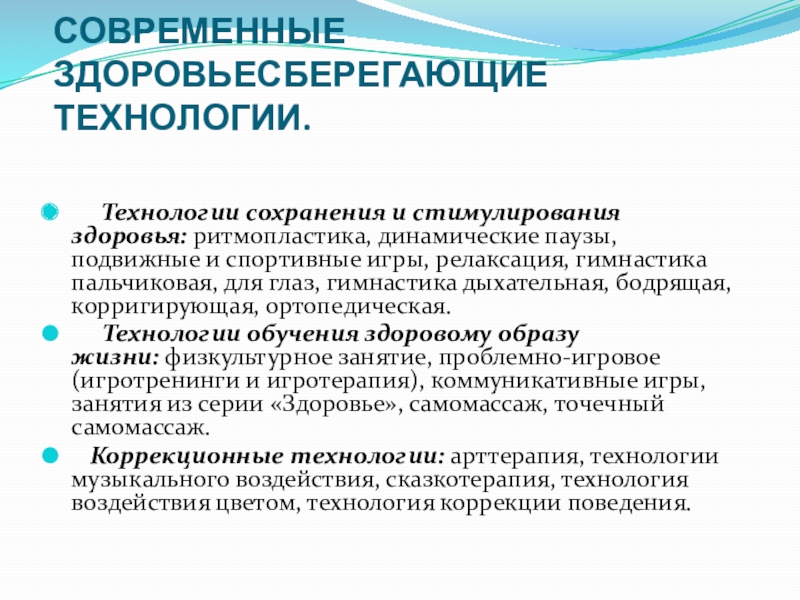 Слайд 6 СОВРЕМЕННЫЕ ЗДОРОВЬЕСБЕРЕГАЮЩИЕ ТЕХНОЛОГИИ.