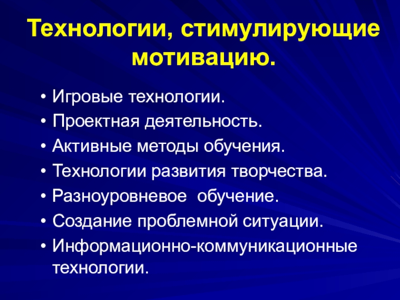 Слайд 33Технологии, стимулирующие мотивацию.