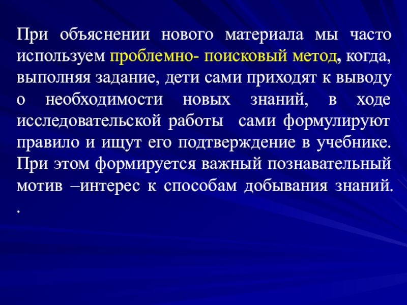 При объяснении нового материала мы часто используем проблемно- поисковый метод, когда,