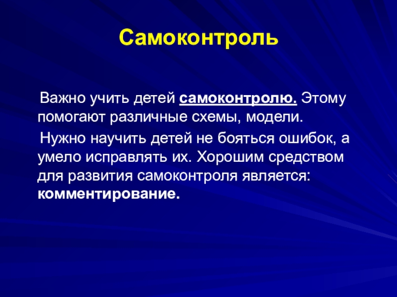Нужно научить детей не бояться ошибок, а умело исправлять их. Хорошим средством для развития самоконтроля является: комментирование.