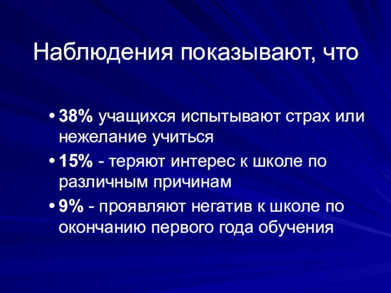 38% учащихся испытывают страх или нежелание учиться