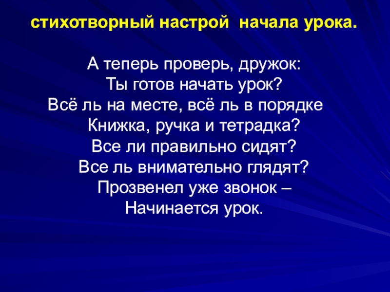 стихотворный настрой начала урока.