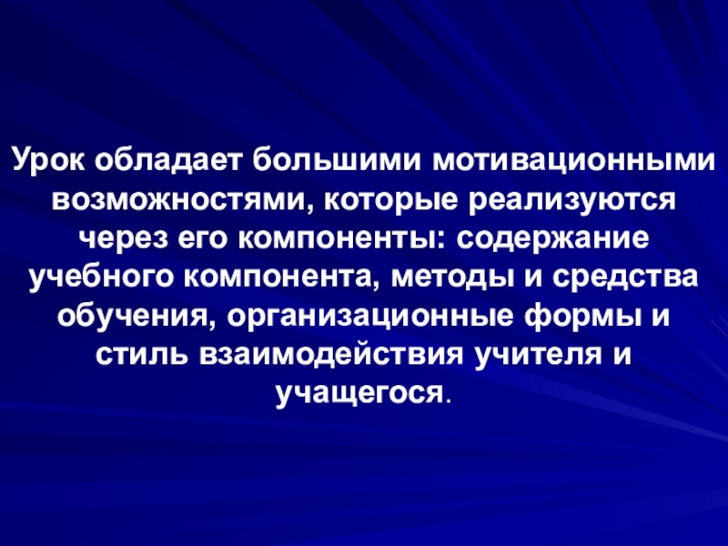Урок обладает большими мотивационными возможностями, которые реализуются через его компоненты: содержание
