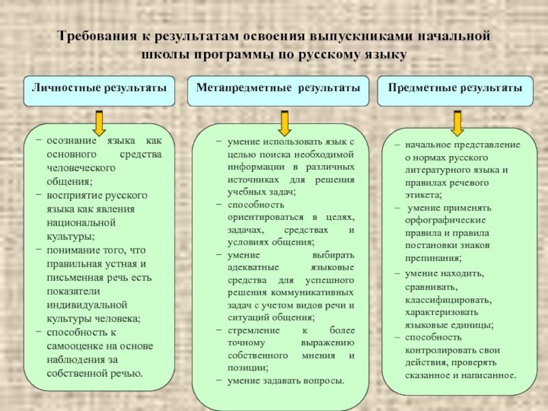 (формирование коммуникативных компетенций учащихся как показателя общей культуры человека, развитие устной и письменной речи)