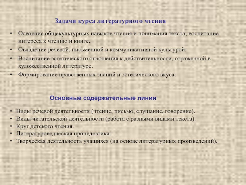 Развитие художественно-творческих и познавательных способностей, эмоциональной отзывчивости, формирование эстетического отношения к искусству слова, овладение первоначальными навыками работы с текстом