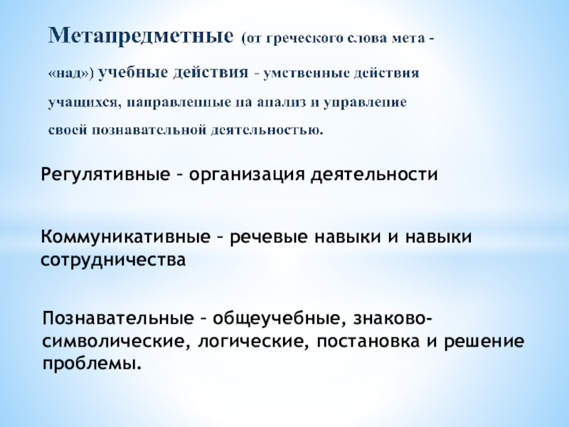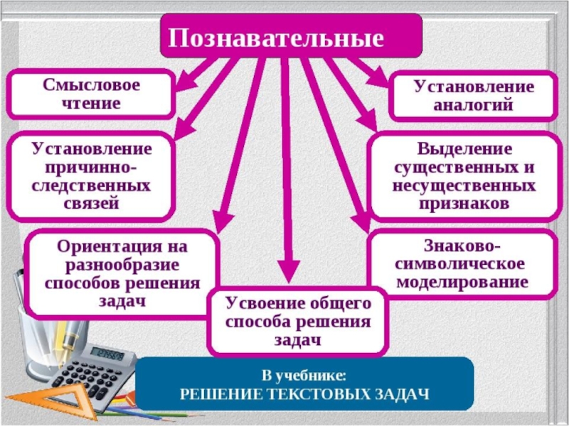 Познавательные – общеучебные, знаково-символические, логические, постановка и решение проблемы.