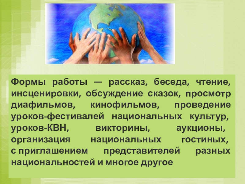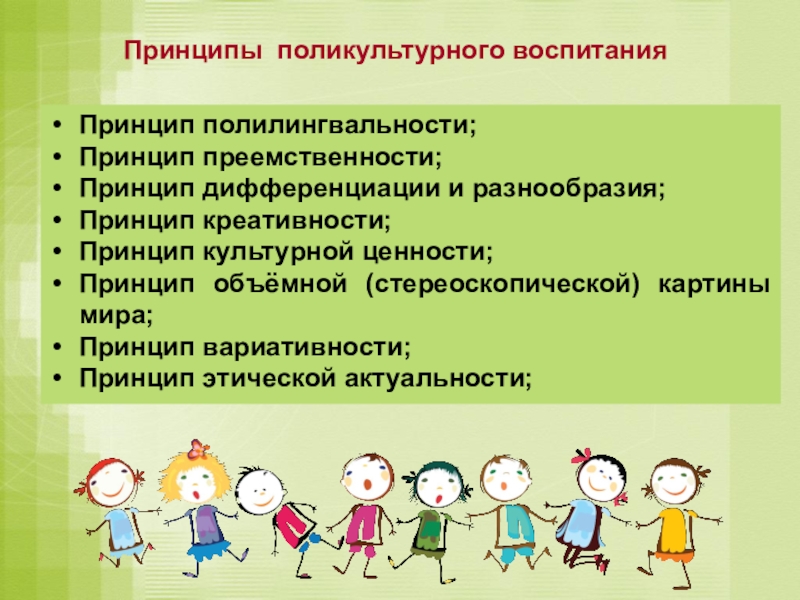 Поведенческие нормы (знания, полученные ребёнком о нормах взаимоотношений между народами, правил этикета, должны быть обязательно закреплены в его собственном поведении)