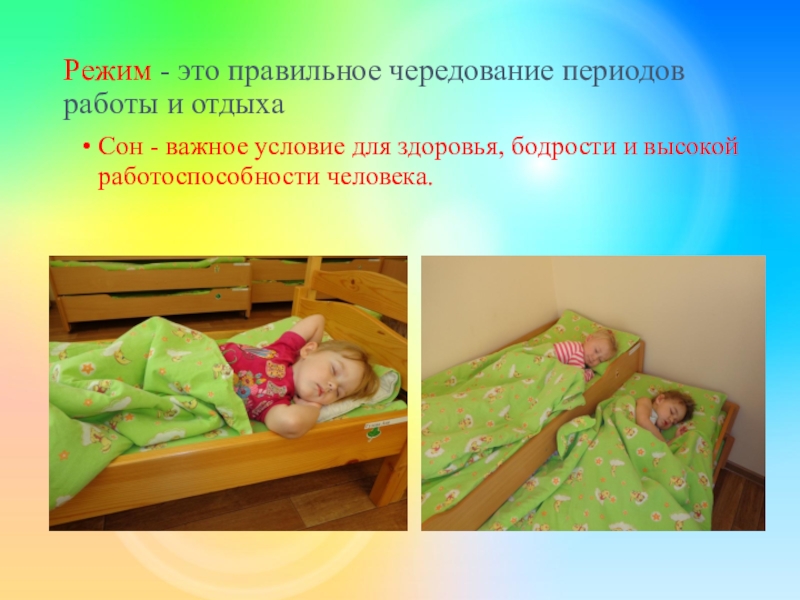 Слайд 12Режим - это правильное чередование периодов работы и отдыха