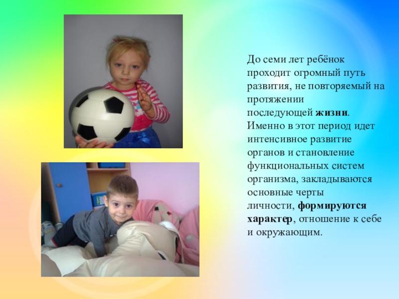 протяжении последующей жизни. Именно в этот период идет интенсивное развитие органов и становление функциональных систем организма, закладываются основные черты личности, формируются характер, отношение к себе и окружающим.