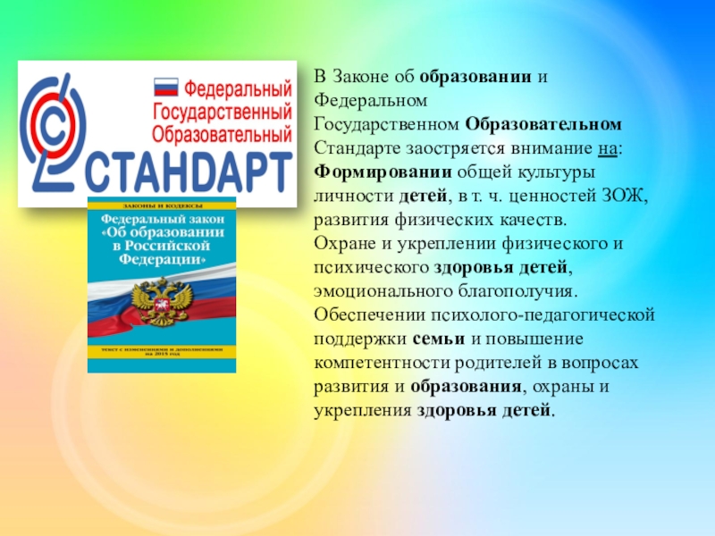 Слайд 3В Законе об образовании и Федеральном Государственном Образовательном