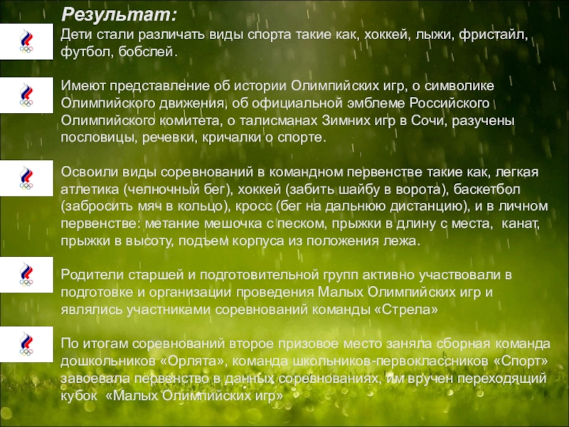 Расширять представления о Российских спортсменах- олимпийцах;