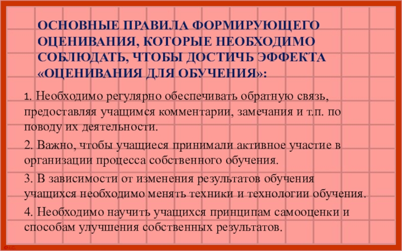 1. Необходимо регулярно обеспечивать обратную связь, предоставляя учащимся комментарии, замечания и т.п. по поводу их деятельности.