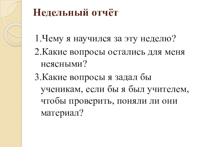 Слайд 16Недельный отчёт