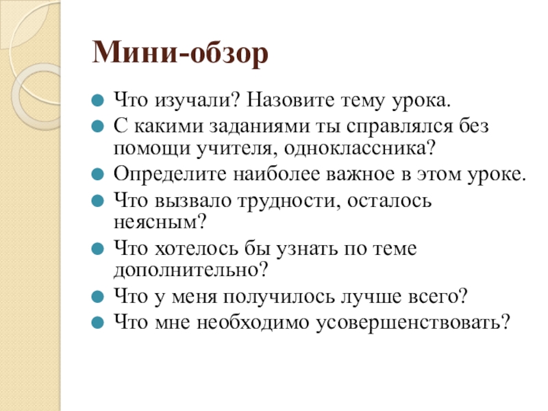 Мини-обзор (проводится в конце урока)