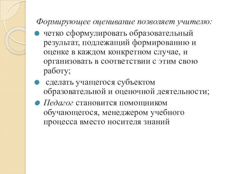 Слайд 5Формирующее оценивание позволяет учителю: