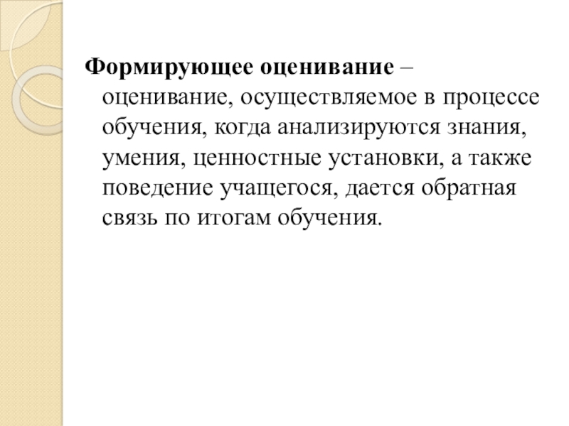 Слайд 2Формирующее оценивание – оценивание, осуществляемое в процессе обучения, когда анализируются знания,