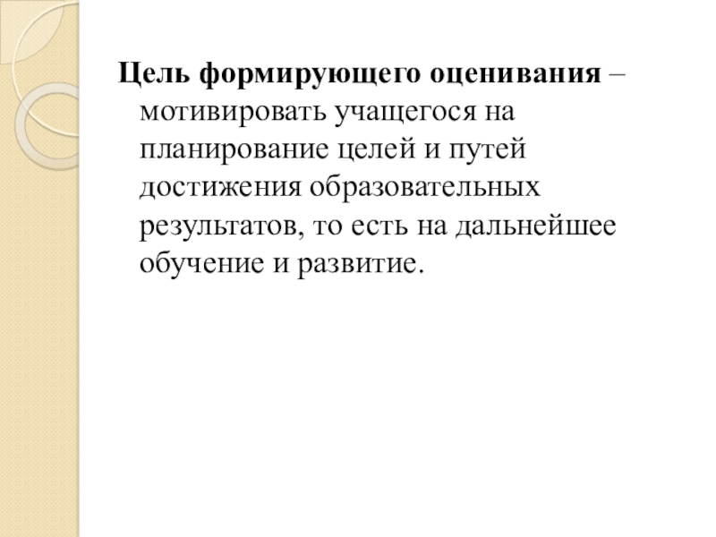 Слайд 3Цель формирующего оценивания – мотивировать учащегося на планирование целей и путей достижения