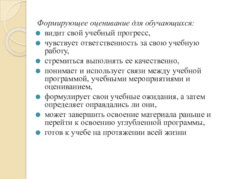 Слайд 6Формирующее оценивание для обучающихся: