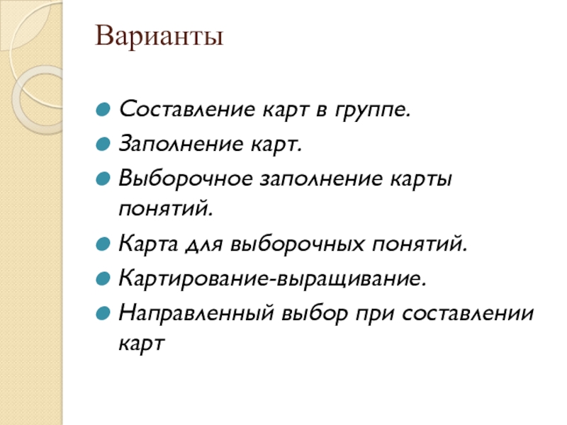 Выборочное заполнение карты понятий.