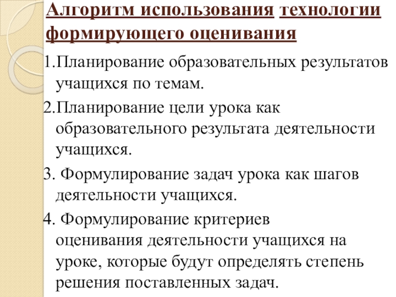 Слайд 9Алгоритм использования технологии формирующего оценивания