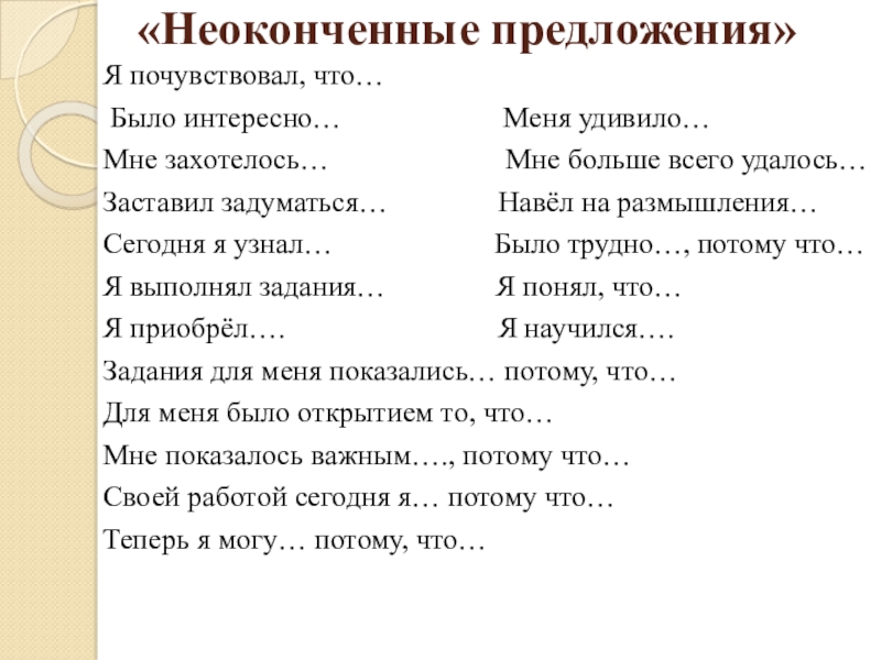 Слайд 20«Неоконченные предложения»