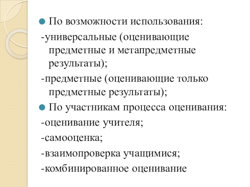 -универсальные (оценивающие предметные и метапредметные результаты);
