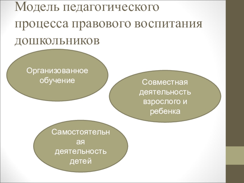 Слайд 10Модель педагогического процесса правового воспитания дошкольников