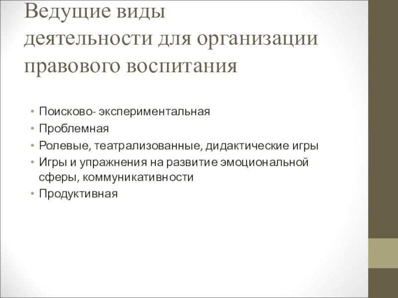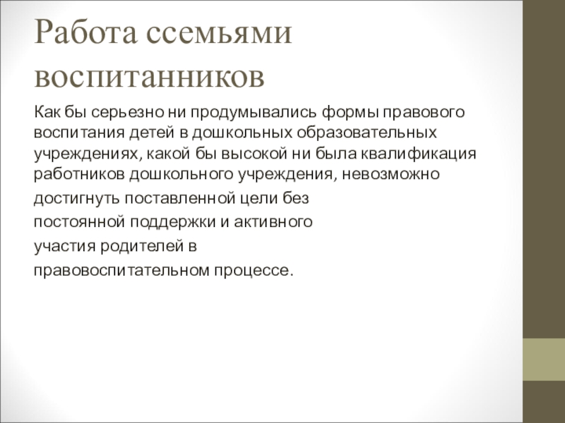 правового воспитания и вовлечения родителей в процесс правового воспитания детей;