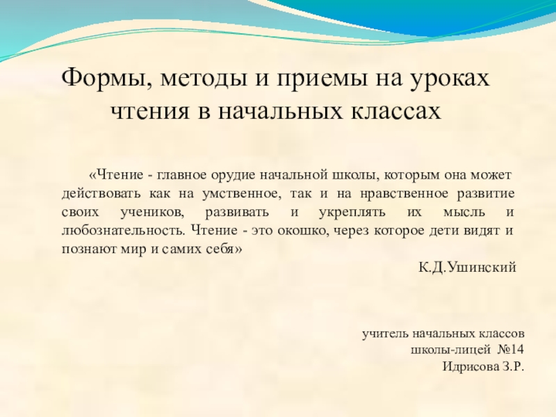 Формы, методы и приемы на уроках чтения в начальных классах