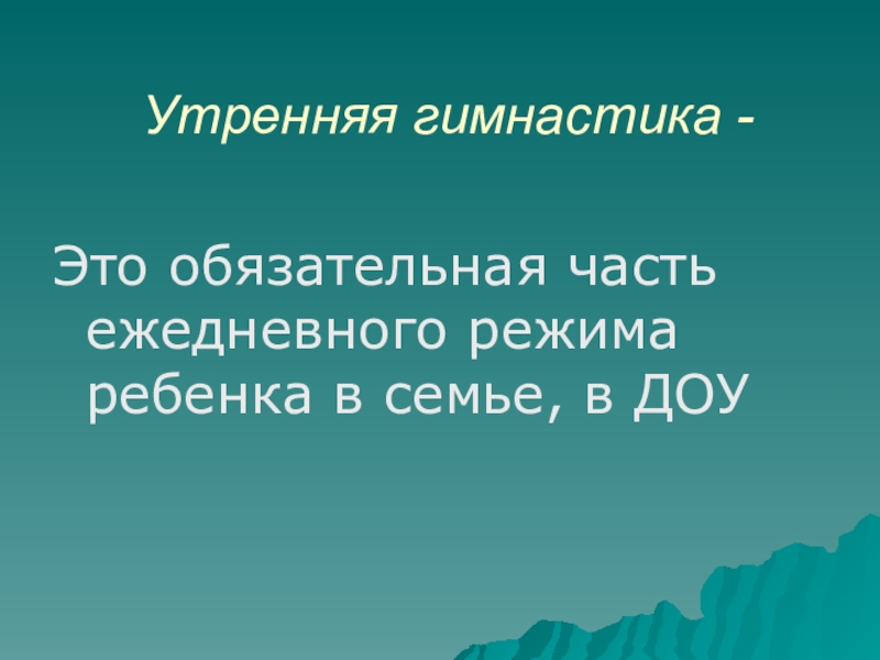 Утренняя гимнастика - Это обязательная часть ежедневного режима ребенка в семье, в ДОУ