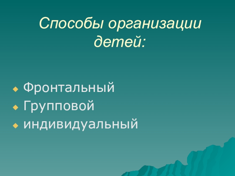Способы организации детей: Фронтальный Групповойиндивидуальный