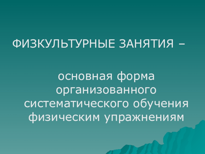 ФИЗКУЛЬТУРНЫЕ ЗАНЯТИЯ –  основная форма организованного систематического обучения физическим упражнениям