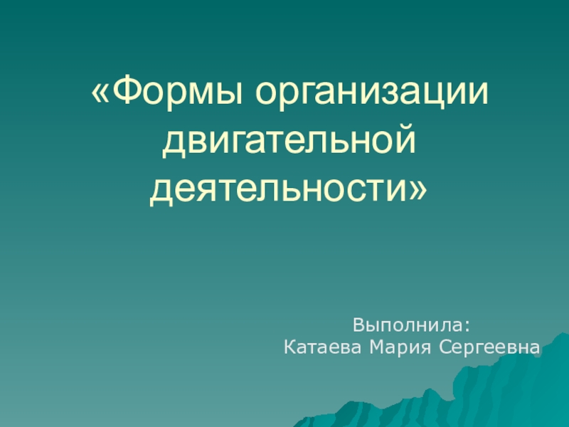 «Формы организации двигательной деятельности»Выполнила:Катаева Мария Сергеевна