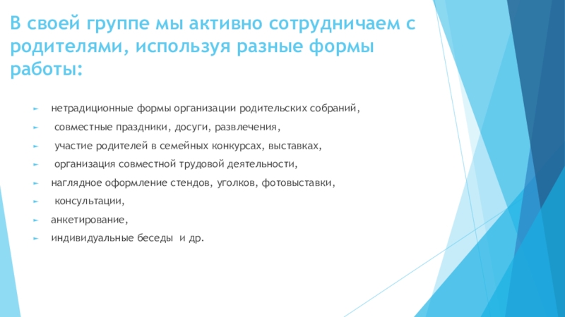 индивидуальные беседы и др.