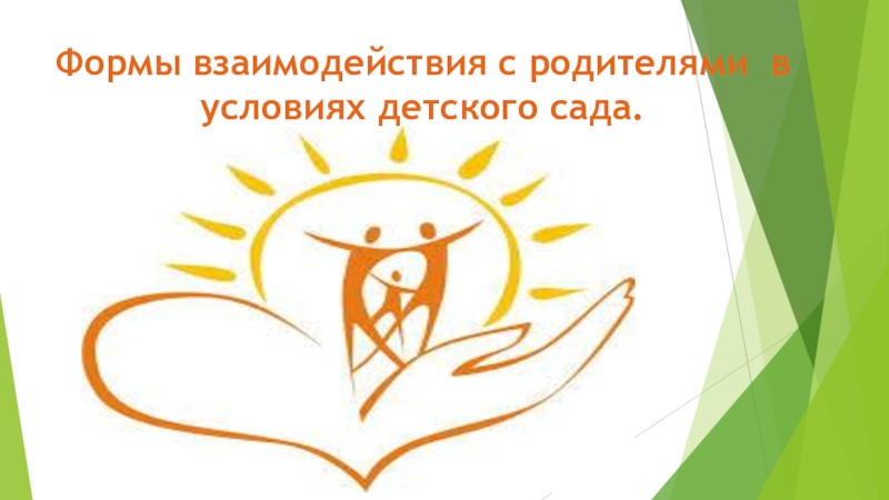 Слайд 1Формы взаимодействия с родителями в условиях детского сада.