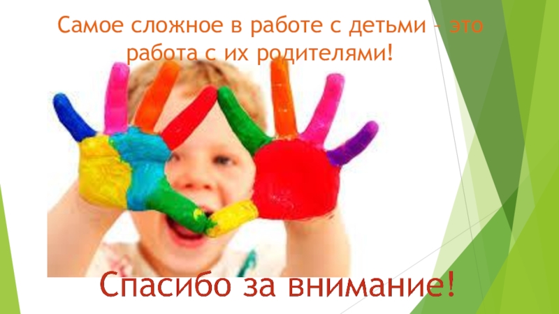 Слайд 27 Самое сложное в работе с детьми – это работа