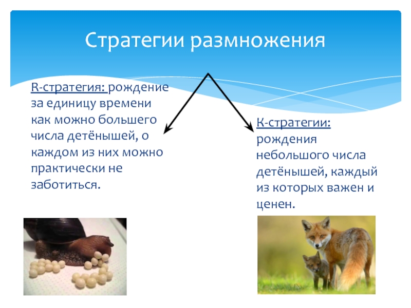 К-стратегии: рождения небольшого числа детёнышей, каждый из которых важен и ценен.