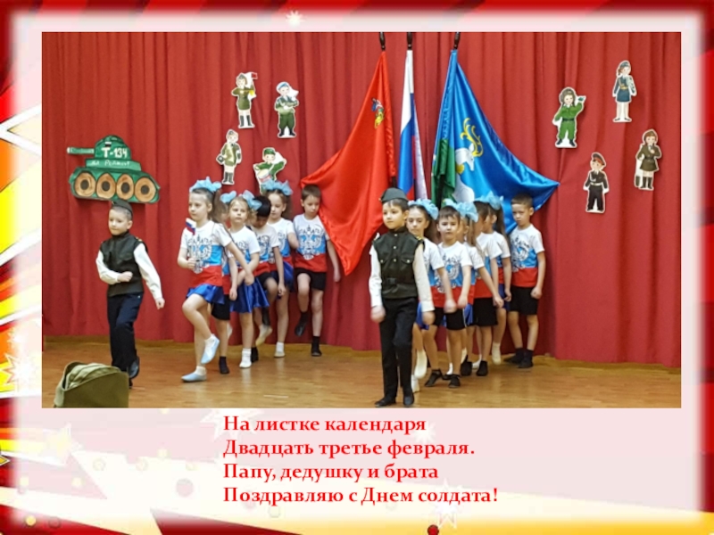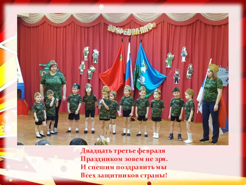Двадцать третье февраля — Праздник замечательный, Всех защитников страны, Поздравим обязательно!