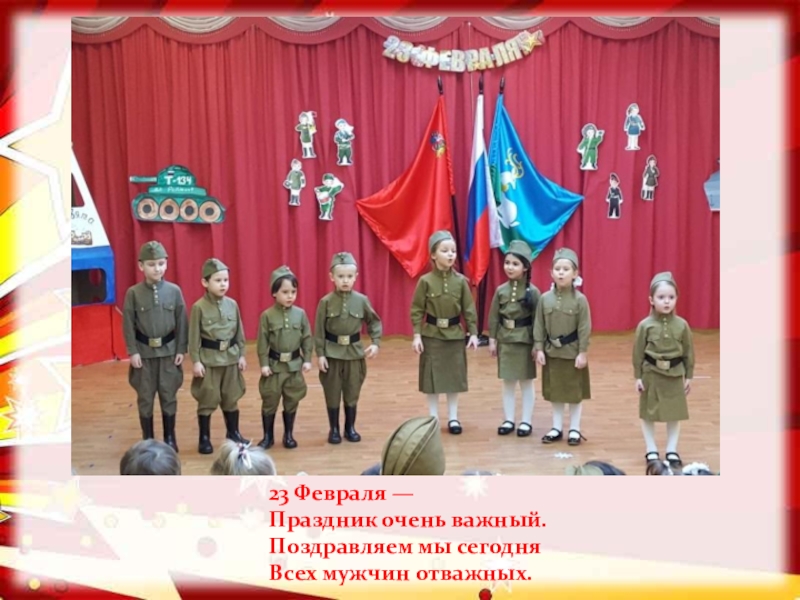 23 Февраля — Праздник очень важный. Поздравляем мы сегодня Всех мужчин отважных.