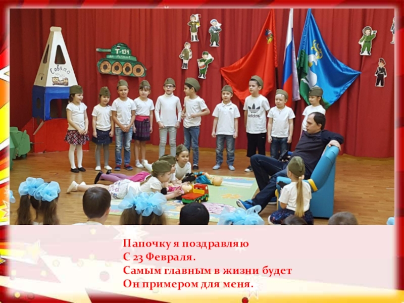Слайд 11Папочку я поздравляю С 23 Февраля. Самым главным в жизни будет Он примером для