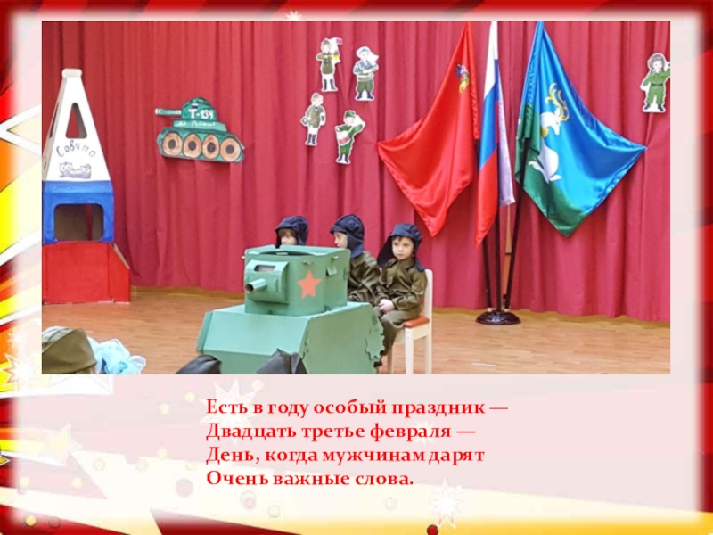 Слайд 10Есть в году особый праздник — Двадцать третье февраля — День, когда мужчинам