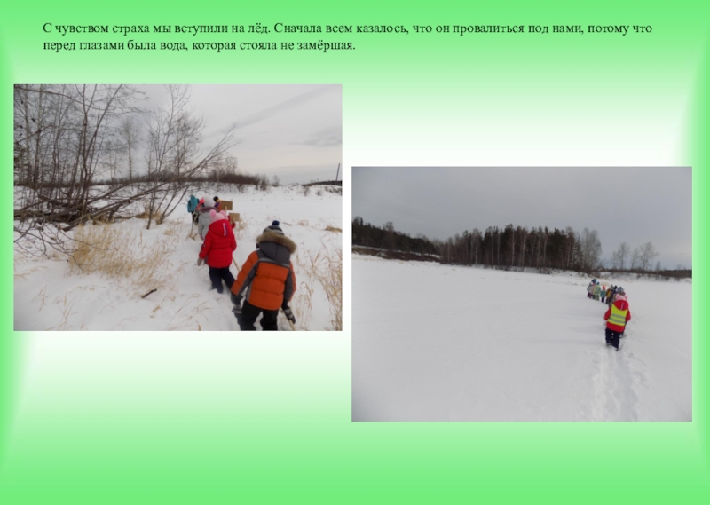 Преодолев чувство страха, мы перебрались по этому мостку к началу пути по льду, вооружившись вешками.