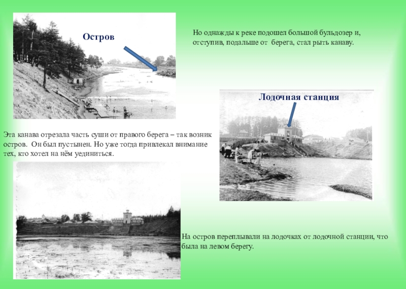 Но однажды к реке подошел большой бульдозер и, отступив, подальше от берега, стал рыть канаву.