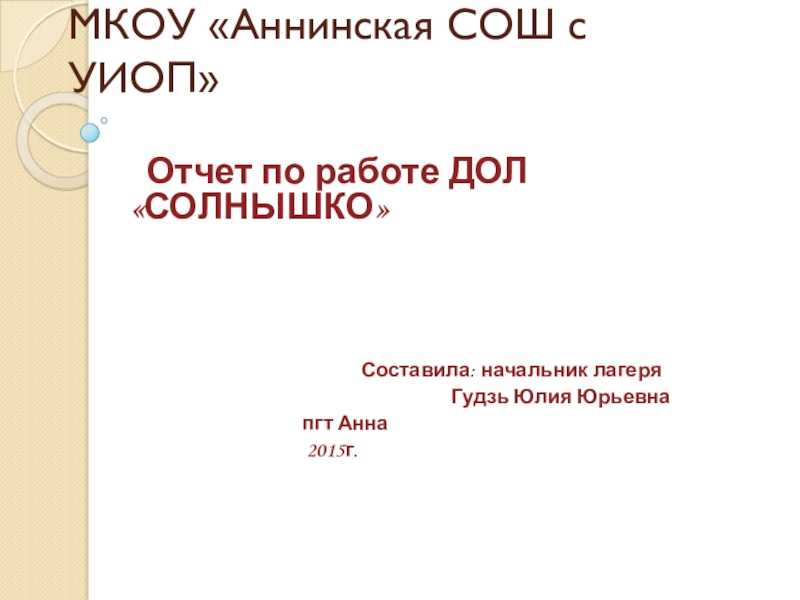 Отчет по работе ДОЛ «СОЛНЫШКО»