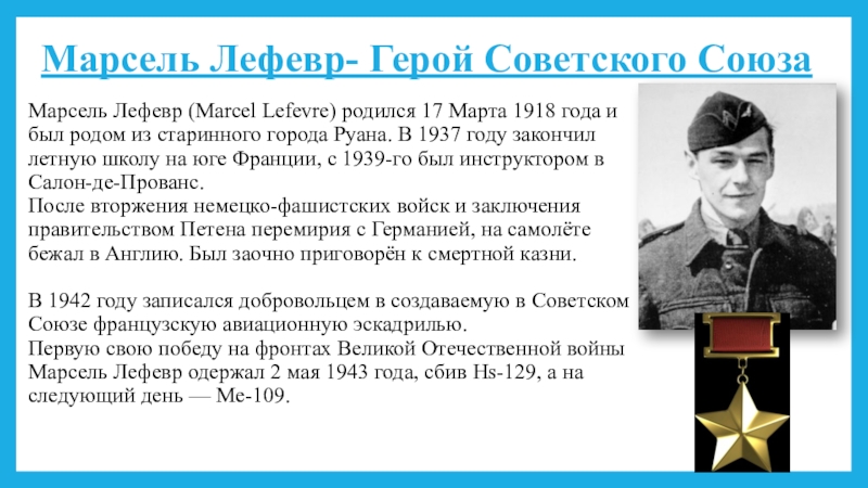 Слайд 10Марсель Лефевр- Герой Советского Союза